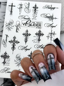 Слайдеры наклейки для длинных ногтей надписи тату крест
