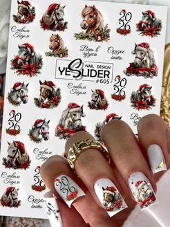 Наклейки для ногтей зима слайдеры Символ года лошади