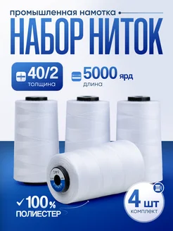 Набор ниток для оверлока, швейной машинки, белый 4 шт