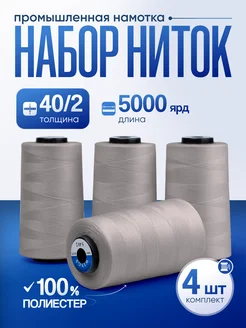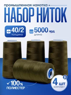 Набор ниток для оверлока, швейной машинки, хаки 4 шт. цв.423