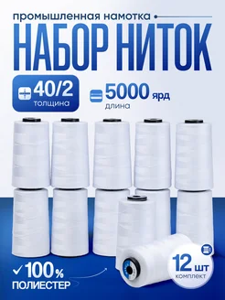 Набор ниток для оверлока, швейной машинки, белый 12шт