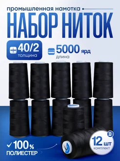Набор ниток для оверлока, швейной машинки, черный 12шт