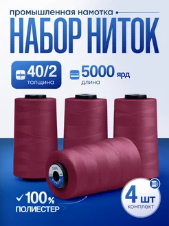 Набор ниток для оверлока, швей. машинки, бордо 4 шт. цв.123
