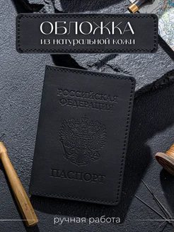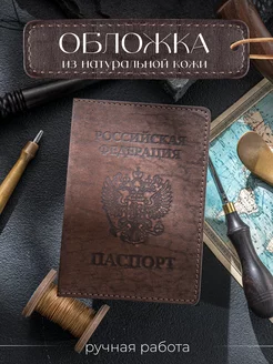 Обложка на паспорт кожаная натуральная с кармашками и гербом