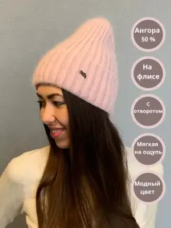 Шапка женская зимняя бини вязаная на флисе