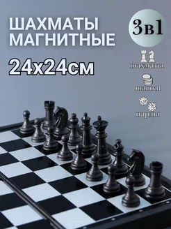 Шахматы шашки и нарды магнитные деревянные 24х24