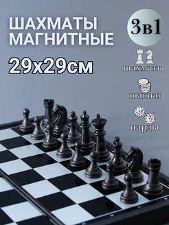 Шахматы шашки и нарды магнитные деревянные 29х29