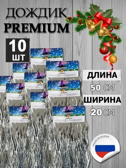 Дождик новогодний на елку серебристый 50 х 20 см - 10 шт