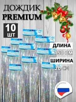 Дождик новогодний на елку серебристый 150 х 20 см - 10 шт