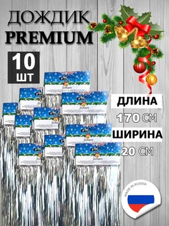 Дождик новогодний на елку серебристый 170 х 20 см - 10 шт