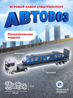 Автовоз металлический с трамваем – игрушки для мальчиков