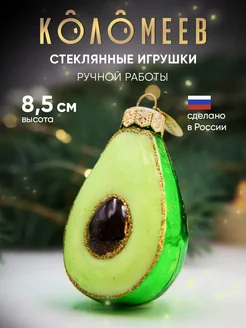 Елочная игрушка новогодняя стекло авокадо 8 см