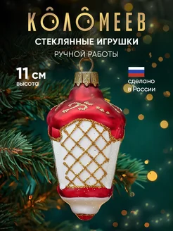 Елочная игрушка стекло фонарик 11 см