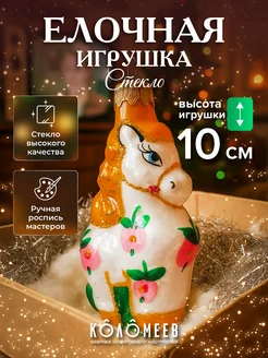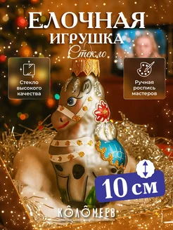 Елочная игрушка стекло Лошадка украшение на елку 10 см