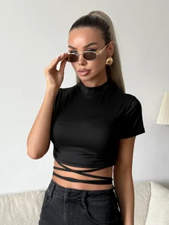 Кроп топ летний вечерний спортивный на завязках черный y2k