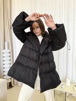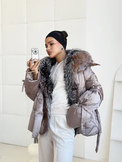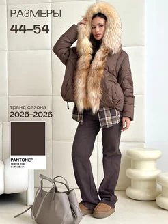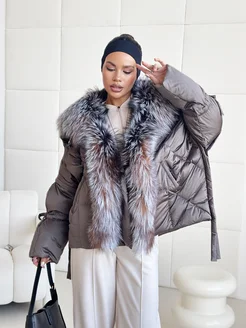 Куртка оверсайз зимняя с мехом и капюшоном жилетка
