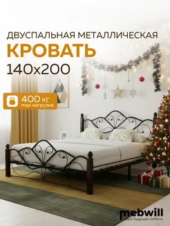 Кровать Леон 140х200 металлическая с изголовьем двуспальная
