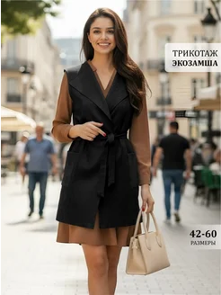 Жилет удлиненный офисный экокожа