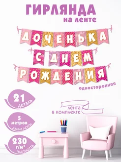 Гирлянда "Доченька, С Днем Рождения" розовая