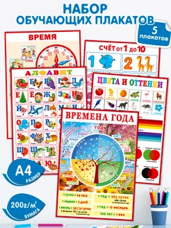 Обучающие учебные плакаты для детского сада набор 5шт A4