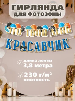 Растяжка поздравительная гирлянда "Это Твой День Красавчик"