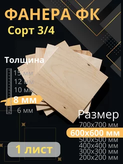 Фанера строительная 60х60 см Толщина 8 мм