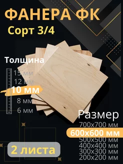 Фанера 10 мм 600х600 2 листа