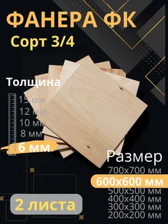 Фанера 6 мм 600х600 2 листа