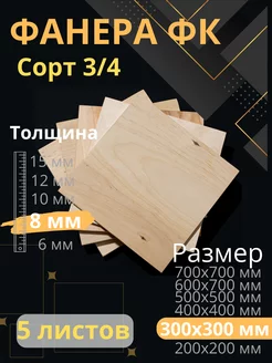 Фанера строительная 30х30 см Толщина 8 мм 5 листов