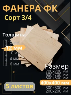 Фанера строительная 40х40 см Толщина 12 мм 5 листов