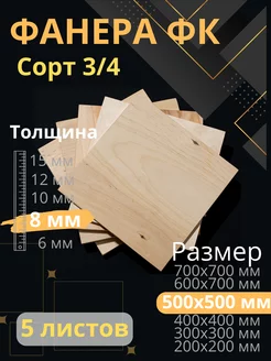 Фанера строительная 50х50 см толщина 8 мм 5 листов