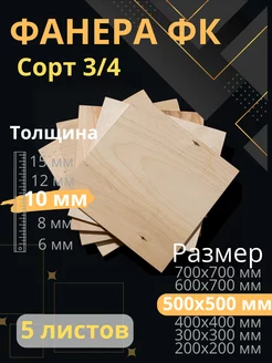 Фанера строительная 50х50 см толщина 10 мм 5 листов