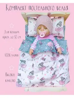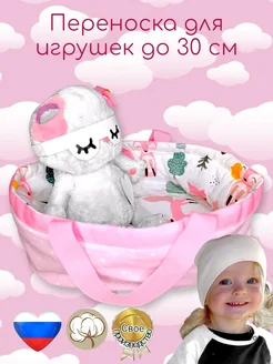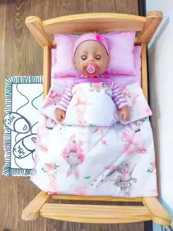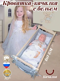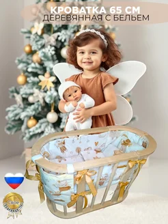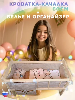 Кукольная кроватка овальная 65 см с бельем и органайзером