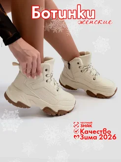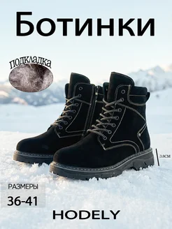 Ботинки зимние берцы женские высокие на шнуровке замша