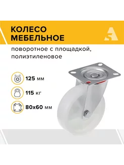 Колесо мебельное поворотное с площадкой 125 мм, 115 кг