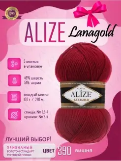 Пряжа Ализе Ланаголд 5 мотков 100г 240м цвет вишня 390