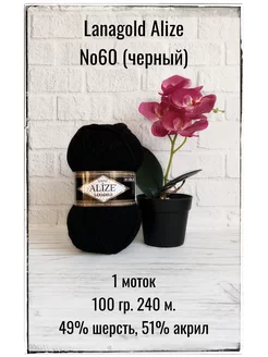 Пряжа для вязания Lanagold 60 черный 1 моток