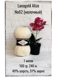 Пряжа для вязания Lanagold 62 молочный 1 моток