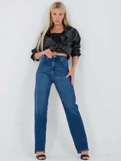 Джинсы женские широкие трубы прямые с высокой посадкой