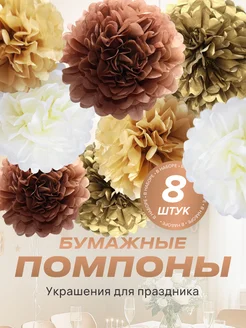 Бумажные помпоны для декора праздника, фотозоны (набор 8 шт)