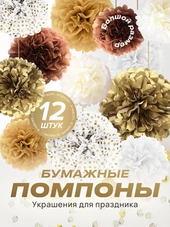 Бумажные помпоны для декора праздника (набор 12 шт)