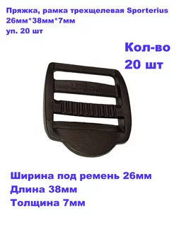 Пряжка рамка трехщелевая, 26мм*38мм*7мм, уп. 20 шт
