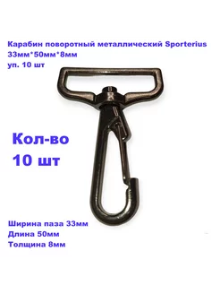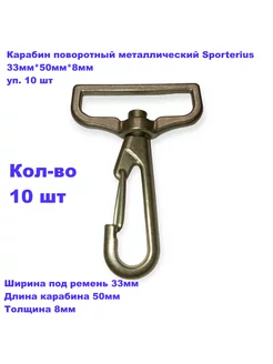 Карабин поворотный металлический, 33мм*50мм*8мм уп. 10 шт