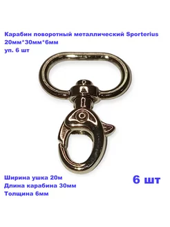 Карабин поворотный металлический, 20мм*30мм*6мм уп. 6 шт