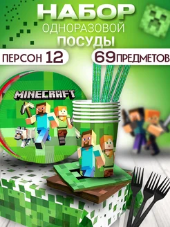 Набор посуды одноразовой для праздника Пиксели