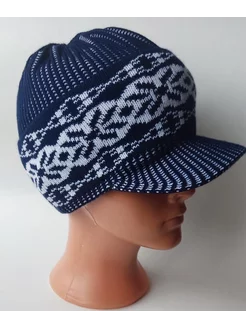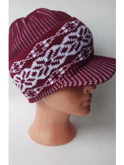 шапка с козырьком теплая с орнаментом