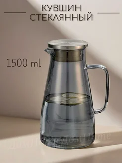 Графин стеклянный серый с крышкой 1.5л для воды, для сока