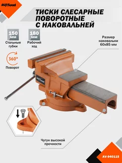 Тиски слесарные поворотные 150 мм с наковальней