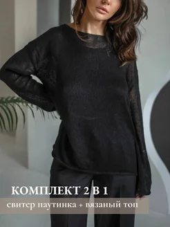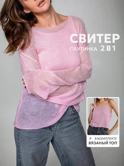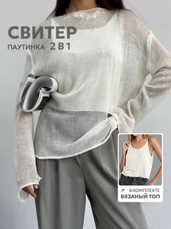 Свитер паутинка оверсайз удлиненный свободный