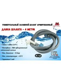 Заливной шланг для стиральной машины 4,0м